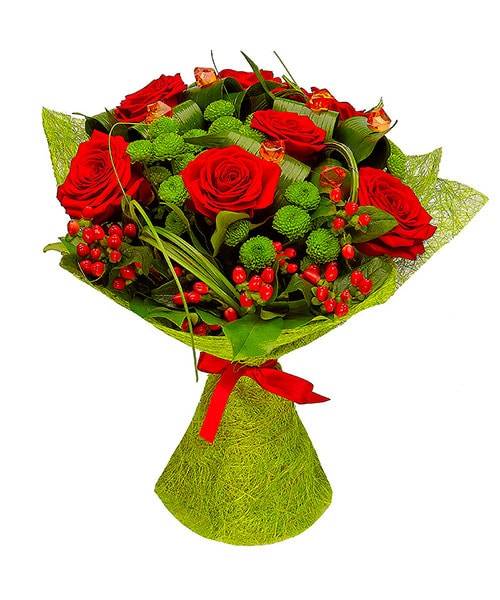 Оригинально оформленный букет из огненных красных роз – это превосходный подарок, который придется кстати, если вам нужно попросить извинения у дорогого человека. Хризантемы призваны дополнить букет и сделать его более универсальным. Яркий цветочный комплект выразит чувство благодарности и уважения коллеге в день его рождения или в честь повышения.